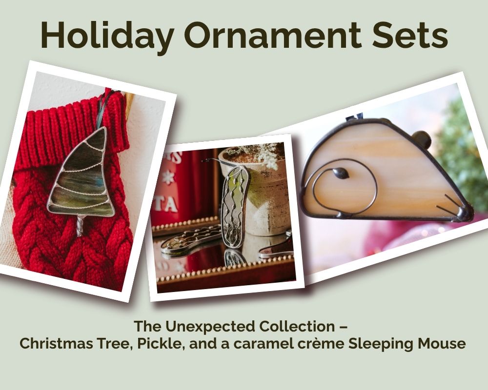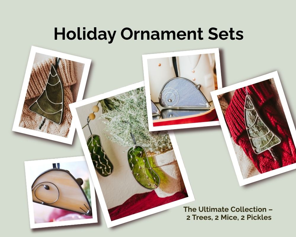Handcrafted in Central Indiana, these stained glass ornaments bring a playful twist to tradition. Choose from cheerful Collections featuring Christmas trees, classic pickles, and sweet little mice — each made with care using traditional techniques and vibrant, authentic glass for heirloom gifts that will last decades.